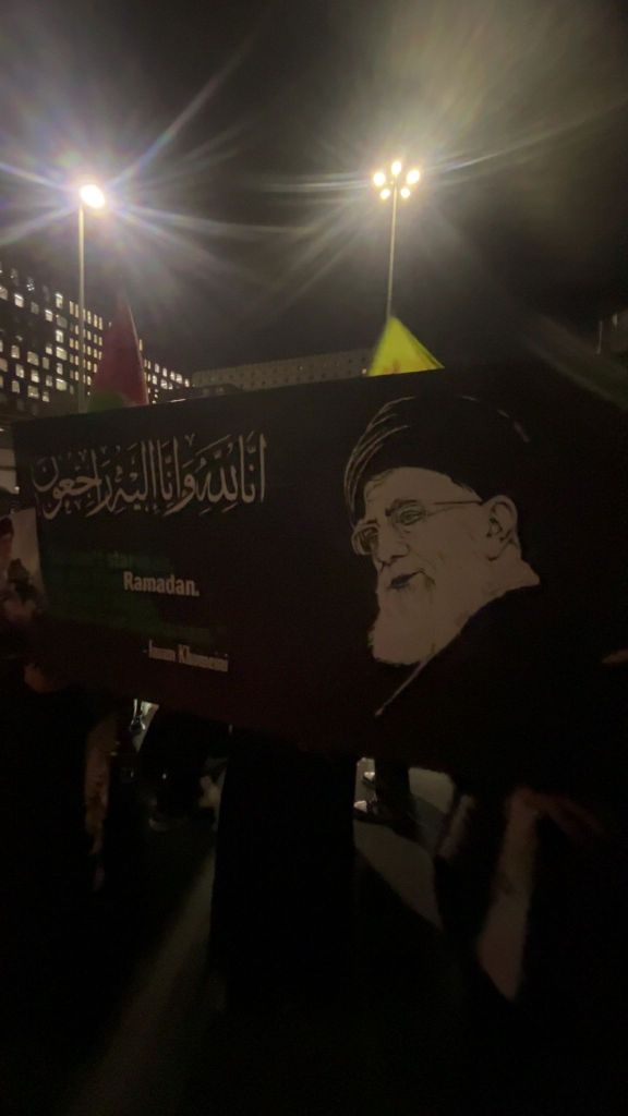 Immediately after the death of the Ayatollah, large protests, vigils, and crowds were formed across the world in his honour. We have seen such things occur wherever there are oppressed people, from Korea to Nigeria. In Pakistan a 3-day curfew was called and 24 were shot dead by the army after the protests in solidarity with the Islamic Republic turned into an open revolt resulting in a police station being burnt down and the storming of the U$ consulate. The oppressed people of the world feel the pain of the loss of Ayatollah Khamenei, and even in England this pain is being felt by Muslims from all national backgrounds and by both Shia as well as Sunni Muslims. On Wednesday the 4th of March 2026, at 6:00 pm on Sidney Street in Manchester, a vigil for the Ayatollah was formed. We attended this vigil. The English Defence League, as well as Zionists, and Pahlavi monarchists turned out to protest the vigil. Tommy Robinson called upon his fascist minions on Twitter by saying: