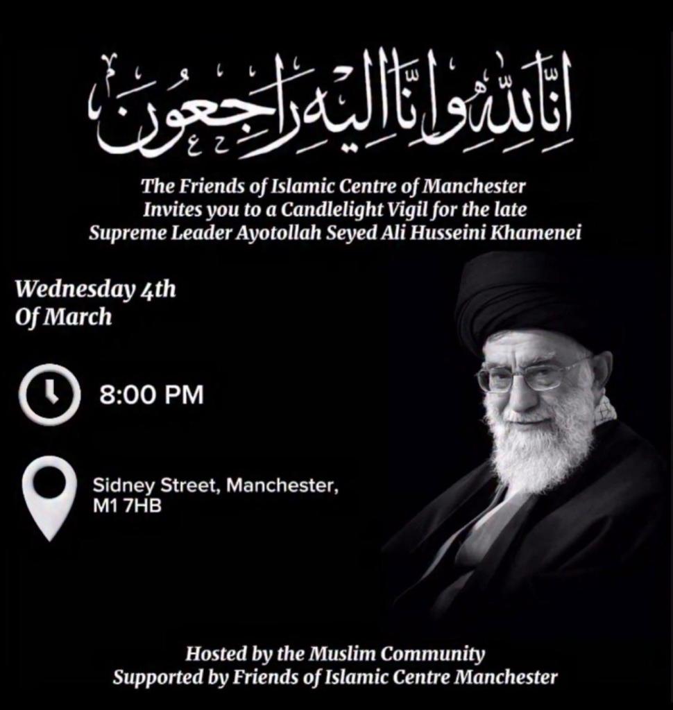 Muslims in Manchester, England, are holding a candlelit vigil for Khamenei.